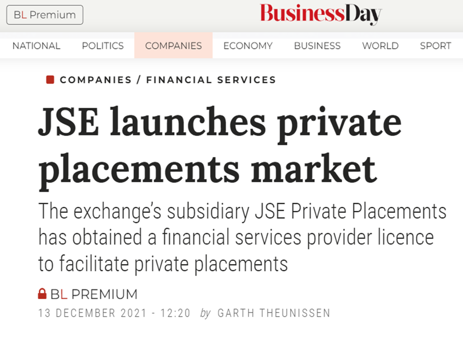 © 2023 JSE Private Placements | JPP is an authorised financial service provider (FSP 51709) | All rights reserved